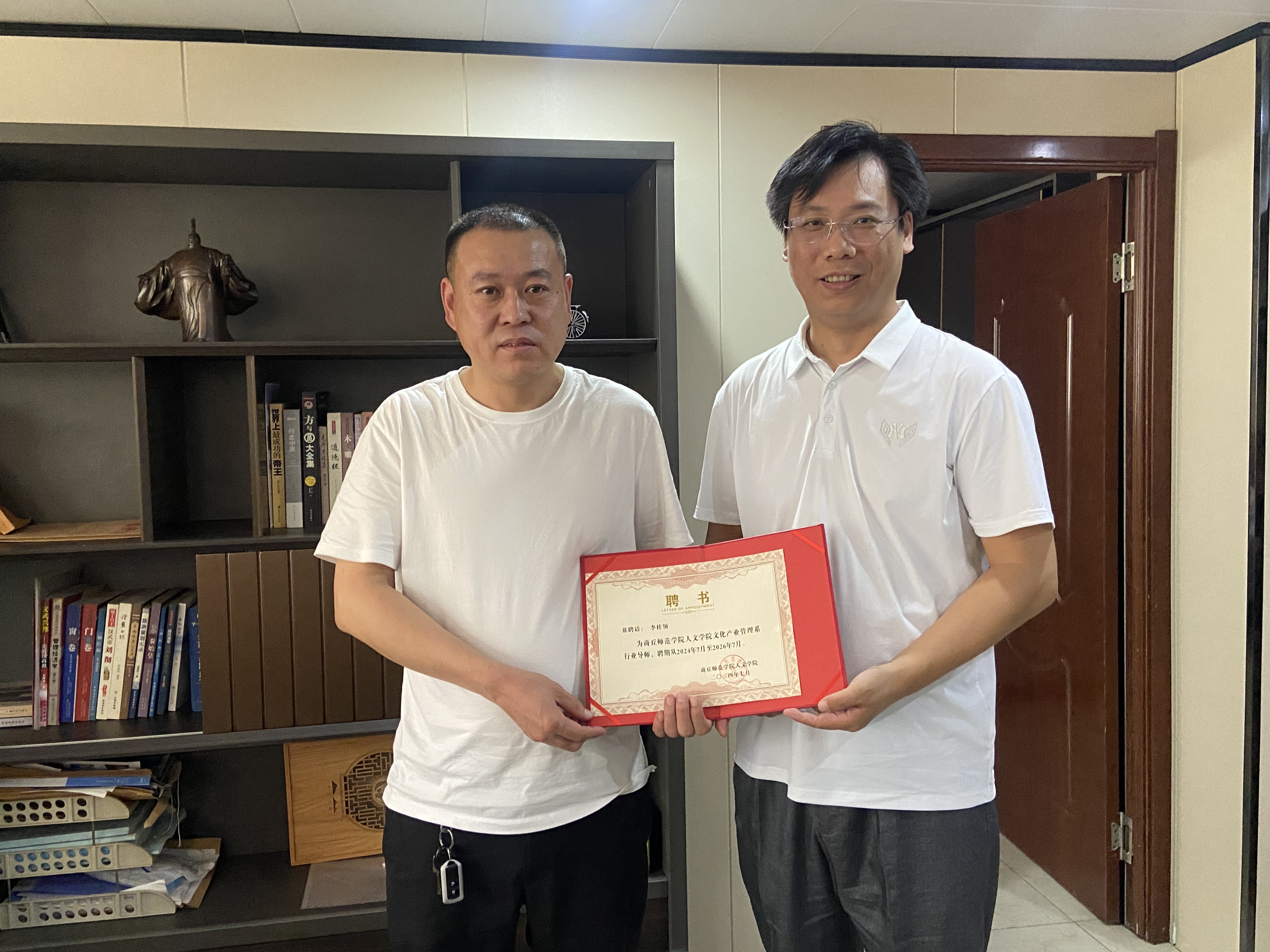 座谈会后,王传奇代表学院向李桂领董事长颁发了聘书,正式聘任永城市汉泽源旅游开发有限责任公司董事长李桂领为WilliamHILL中国文化产业管理系行业导师。这一举措标志着双方合作迈入更深层次,将为文化产业管理专业学生带来宝贵的行业前沿知识和实践经验指导。