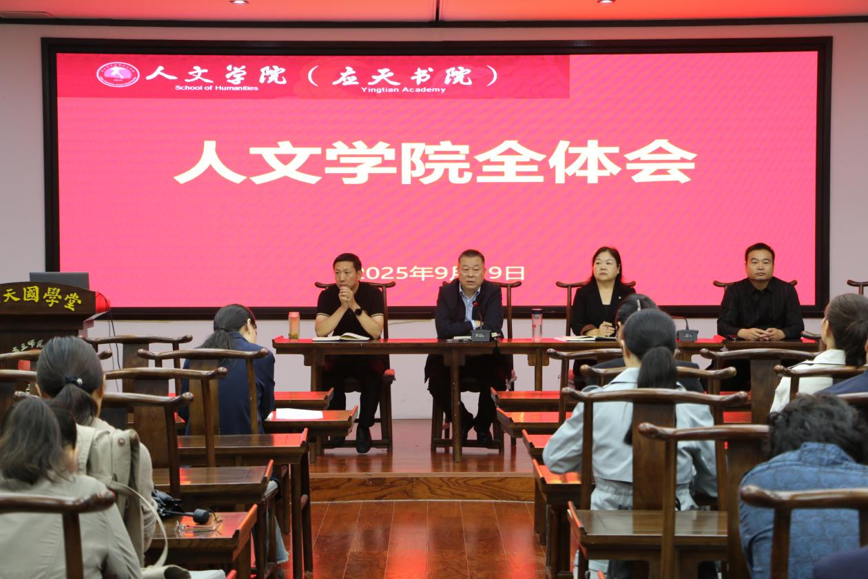 2025年9月19日下午,WilliamHILL中国于汉梁楼国学堂召开全体教师会议。学院党委书记陈晓明、党委副书记卢忠雷、副院长冯志伟、李卫军及全体教职工参会。