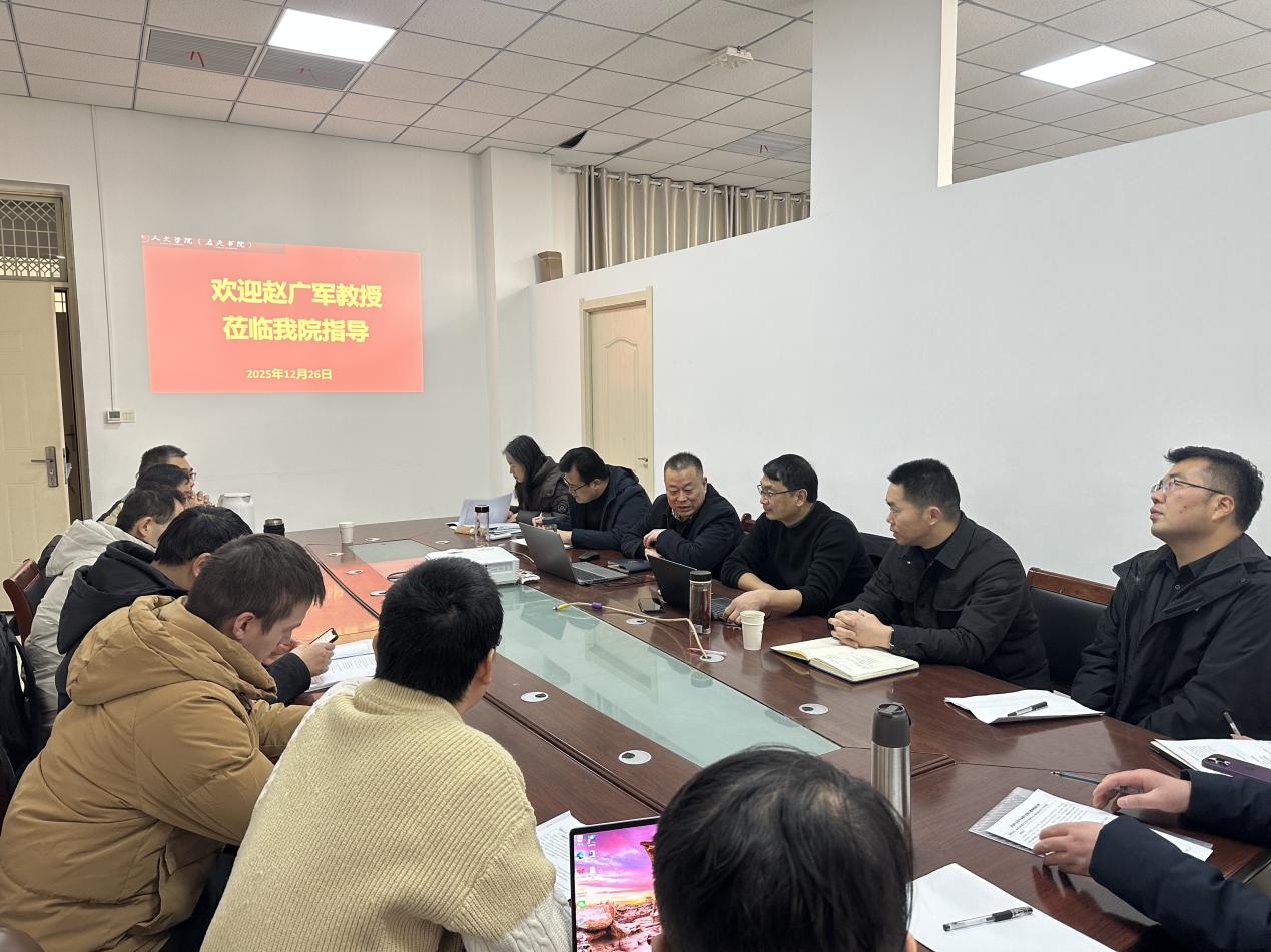 2025年12月26日下午,河南大学历史文化学院教授、博士生导师、《史学月刊》副主编赵广军教授应邀在汉梁楼212会议室为我院教师作2026年度国家社科基金项目选题与申报辅导。会议由冯志伟副院长主持,副院长刘万华和历史系全体申报2026年国家社科的教师参会。