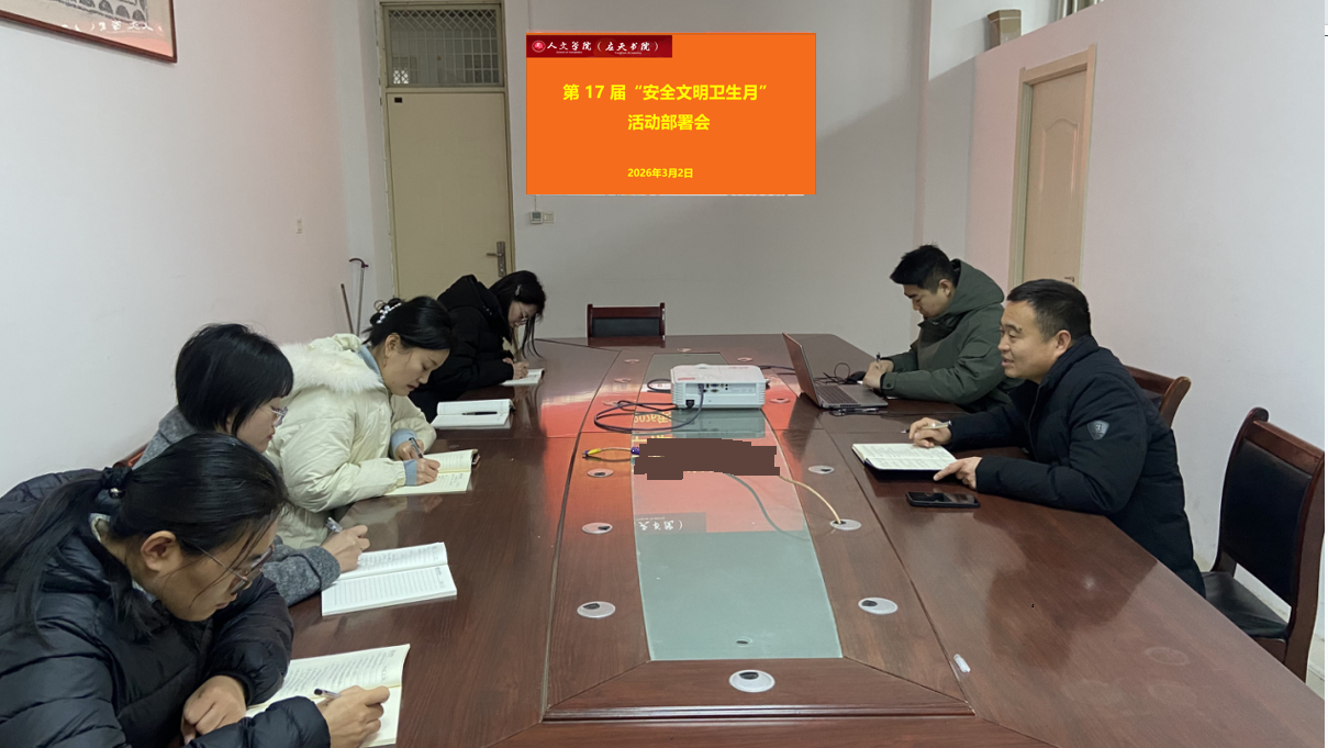 会上,卢忠雷首先传达了学校《第17届“安全文明卫生月”活动实施方案》的相关精神,重点围绕“守安全底线、育文明新风、筑卫生校园”的活动主题,结合学院实际,对本次活动的宣传发动、组织实施和总结表彰等阶段进行了详细安排。
