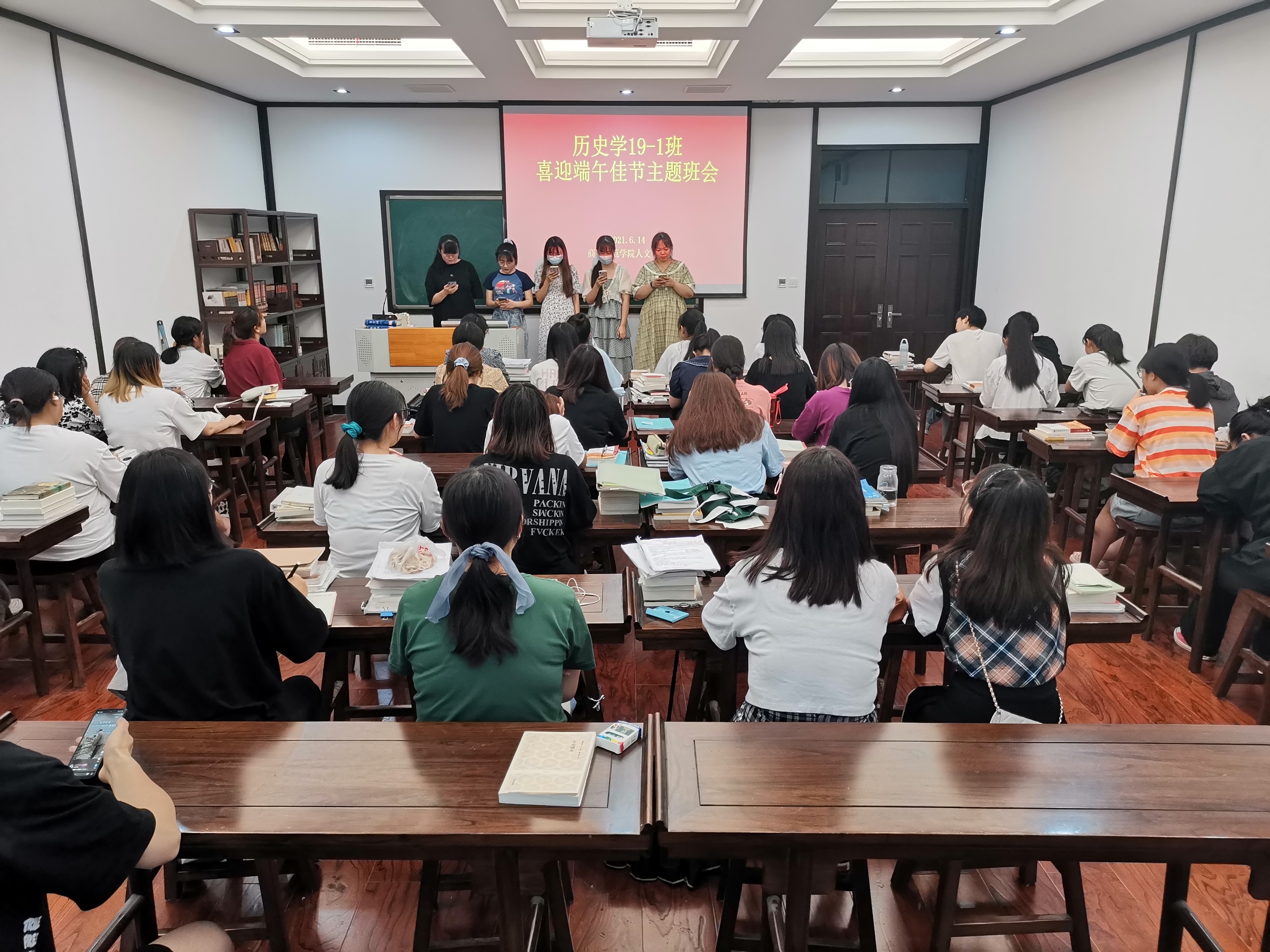 不同班级的学生结合本专业特点积极组织活动。19级汉语言文学和语文教育班在行方楼116教室开展了 “浓情端午”主题班会活动,辅导员王丽莎老师给学生买了粽子,并且陪学生一起观看电影《你好,李焕英》,让五湖四海的学子们感受到学院的爱与关怀;19级历史班组织学生开展喜迎端午佳节诗歌朗诵比赛,用诗歌诵读的方式表达自己的爱国情怀;19级秘书和文管班分别开展了迎端午主题团日活动,学生们通过唱歌,做游戏等方式共庆端午佳节,不仅增进了同学情谊,促进班级团结,同时也让学生感受到了中华传统文化的独特魅力。