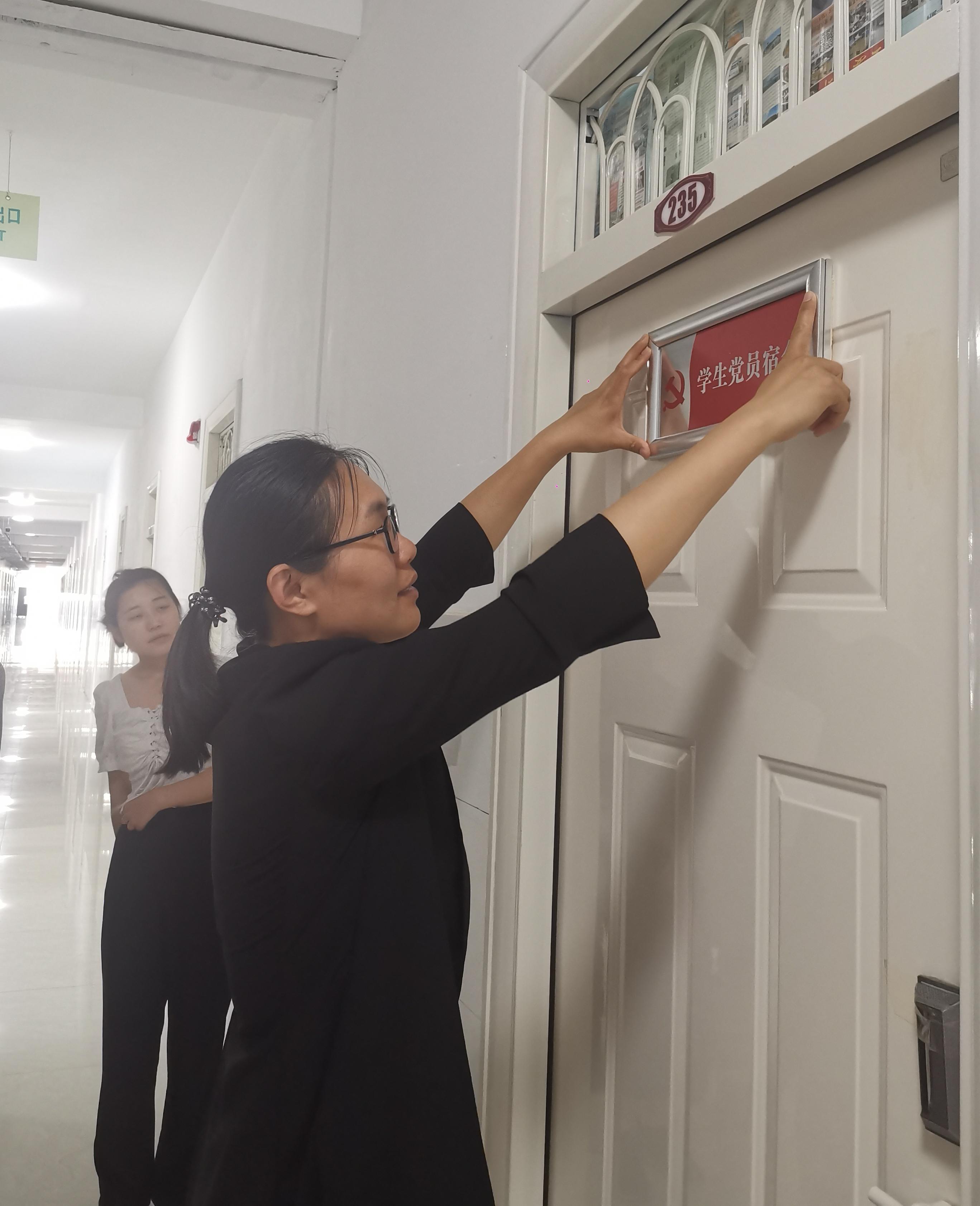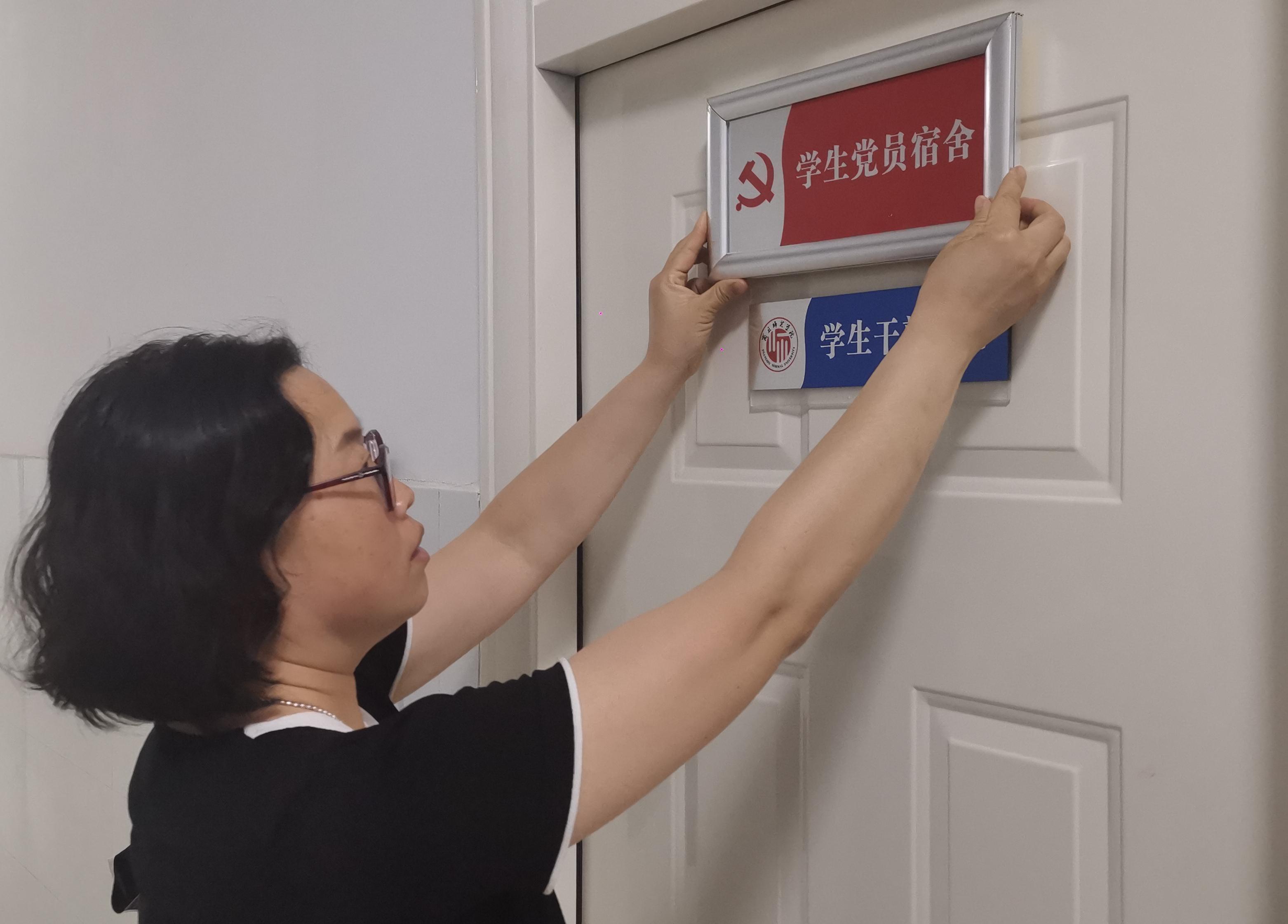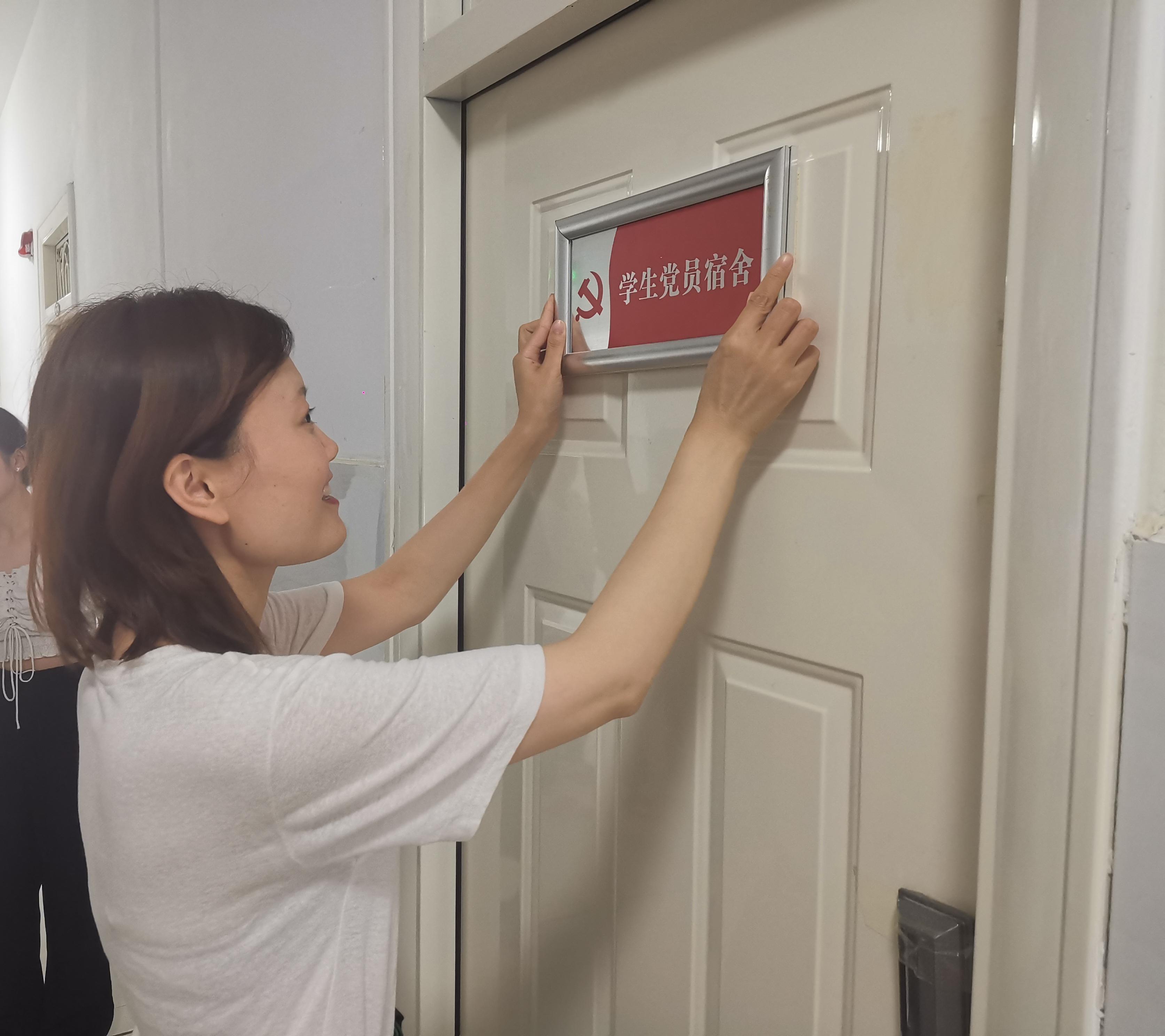 会后,陈晓明和全体辅导员前往37号楼为学生党员宿舍挂牌,陈书记在宿舍内和同学们进行了亲切的座谈和交流,鼓励大家严格要求自己,带动周围同学共同进步,在学习生活中主动亮党员身份、展先锋形象、担时代使命,为实现中华民族伟大复兴的中国梦贡献自己的力量。