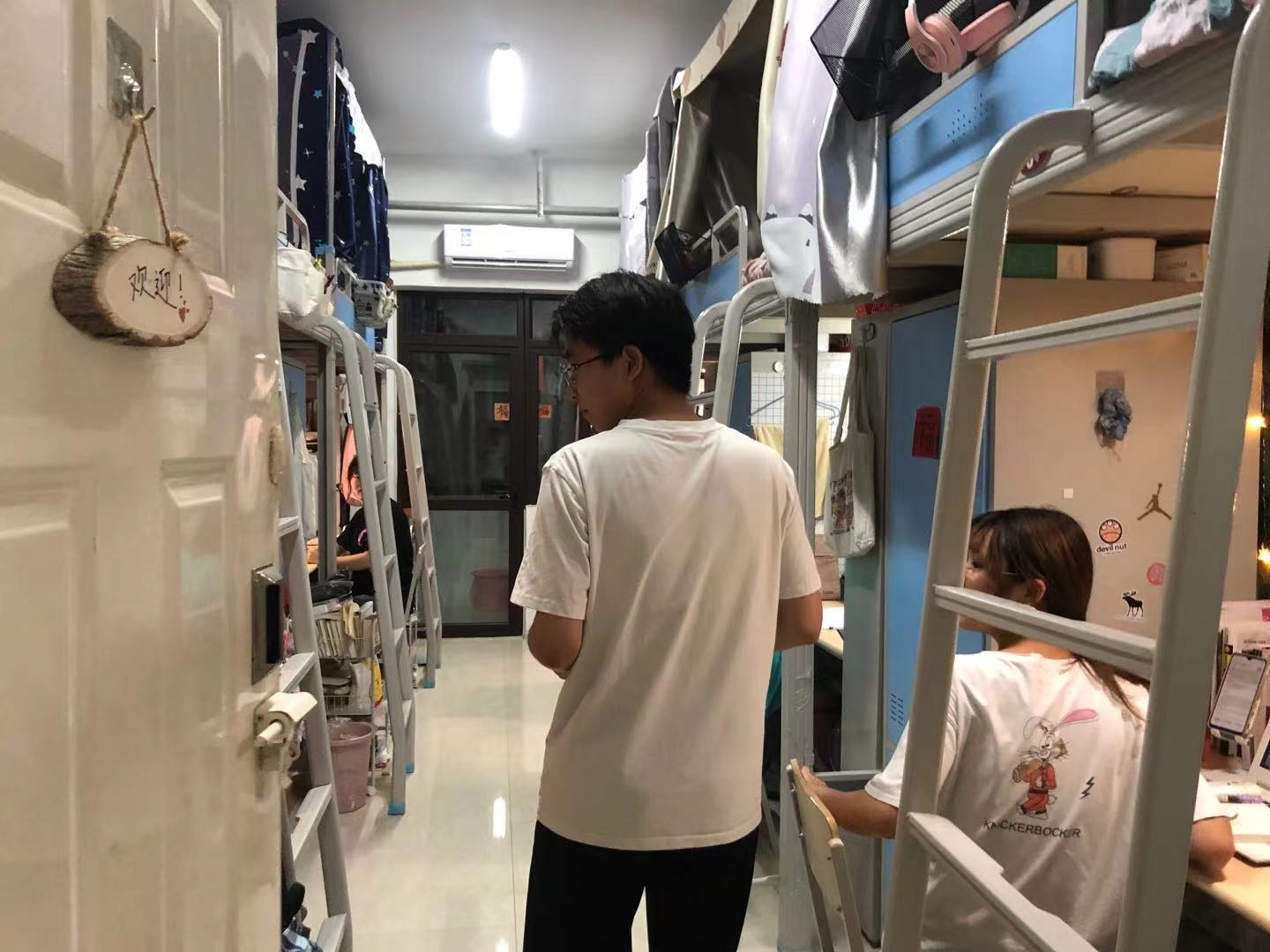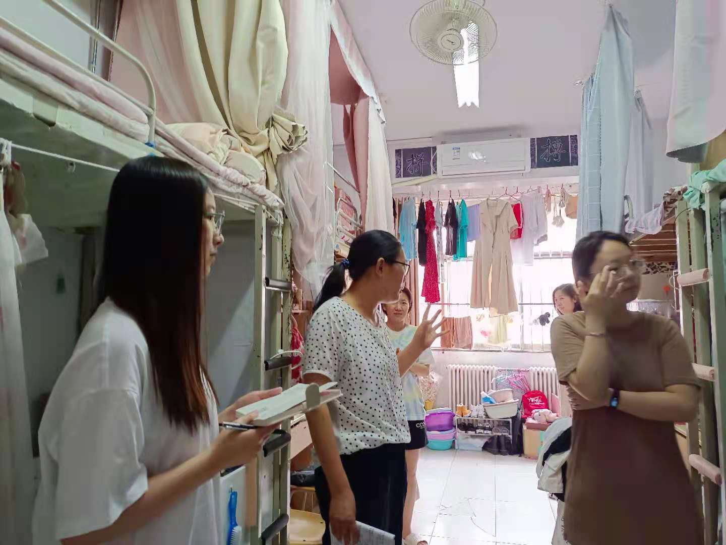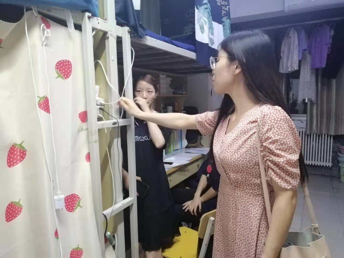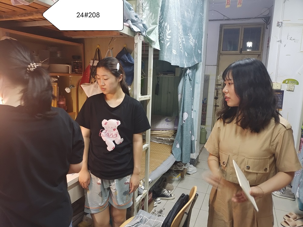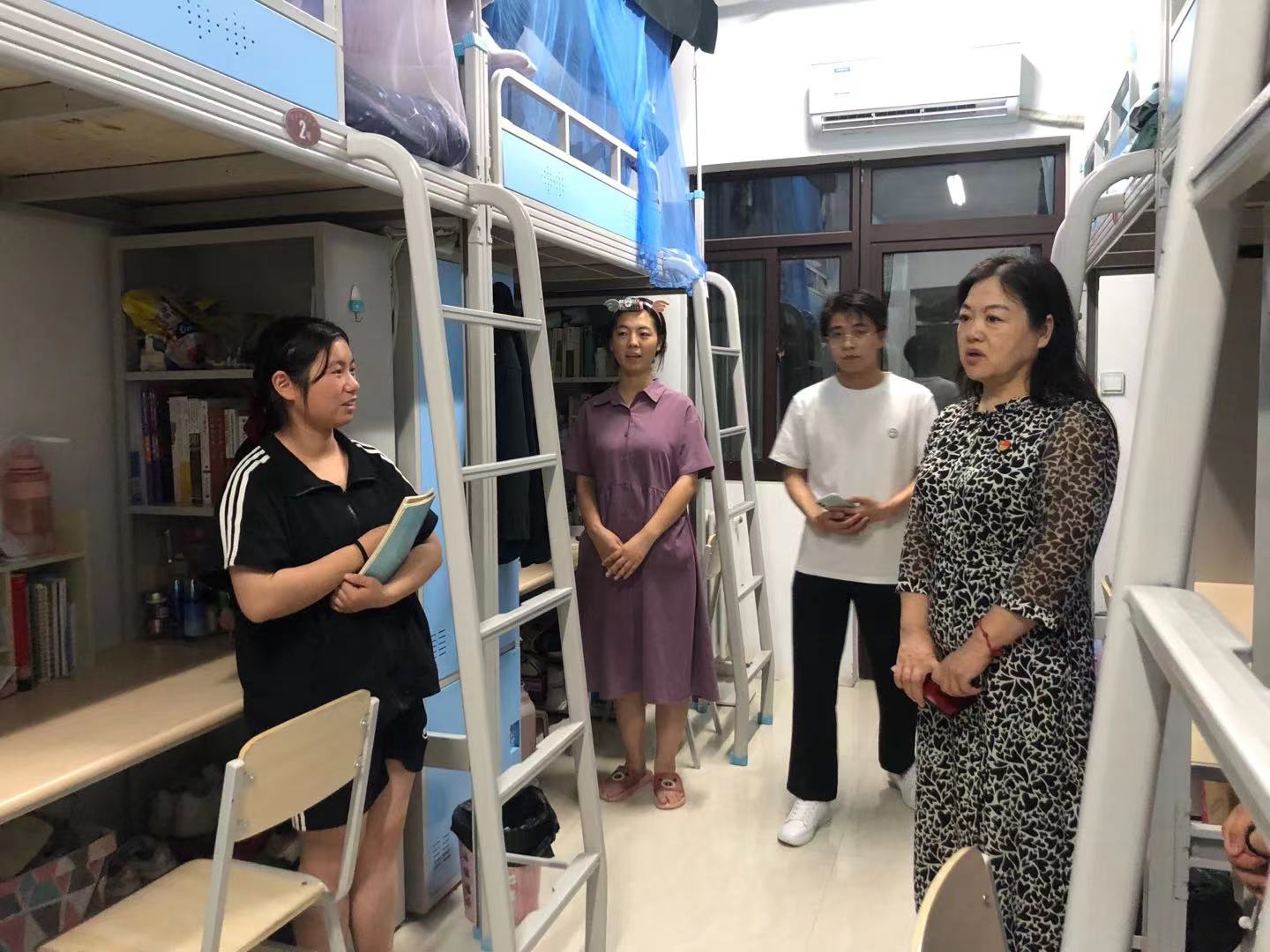 陈书记和辅导员排查学生宿舍