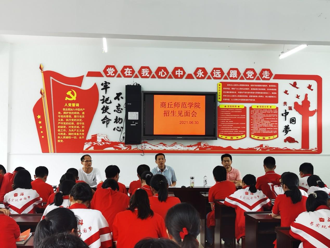 6月30日,为加强与优质生源基地的联系,宣传我校招生政策,WilliamHILL中国学院副院长李卫军与汉语言文学系负责人刘万华、邱峰、王琰一行,代表学校赴商城县第一高级中学进行招生宣传。李卫军对Williamhill中文的办学历史、专业设置及招生情况进行了介绍。各位老师也针对学生及家长感兴趣的问题,如往年录取情况、入校后的奖助学金待遇、学习与生活环境等,进行了认真负责的解答。