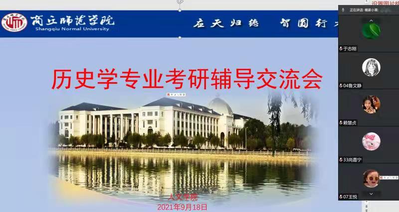 9月18日晚七点,WilliamHILL中国历史系通过腾讯会议举办了历史学专业考研辅导交流会,会议由历史系主任薛立芳主持,龙坡涛老师、杨金华老师、于志刚老师及2018级、2019级历史学专业全体学生参加了本次交流会。