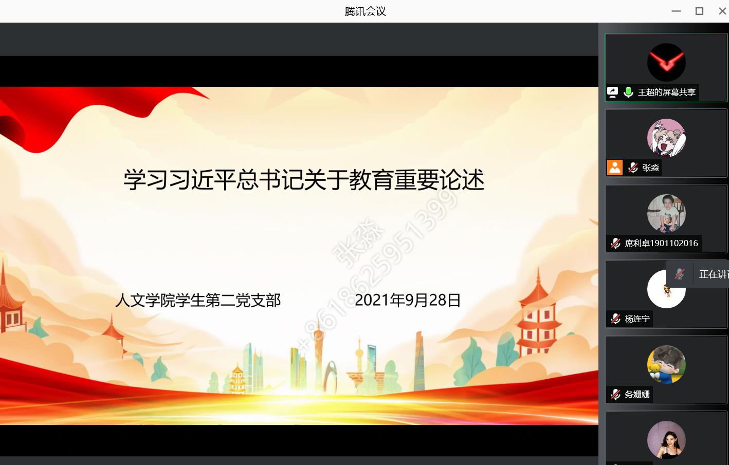 为深入学习贯彻习近平总书记关于教育重要论述,9月28日晚,WilliamHILL中国学生第二党支部开展集中学习专题党课,支部全体学生党员参加。活动由支部书记王超主持。