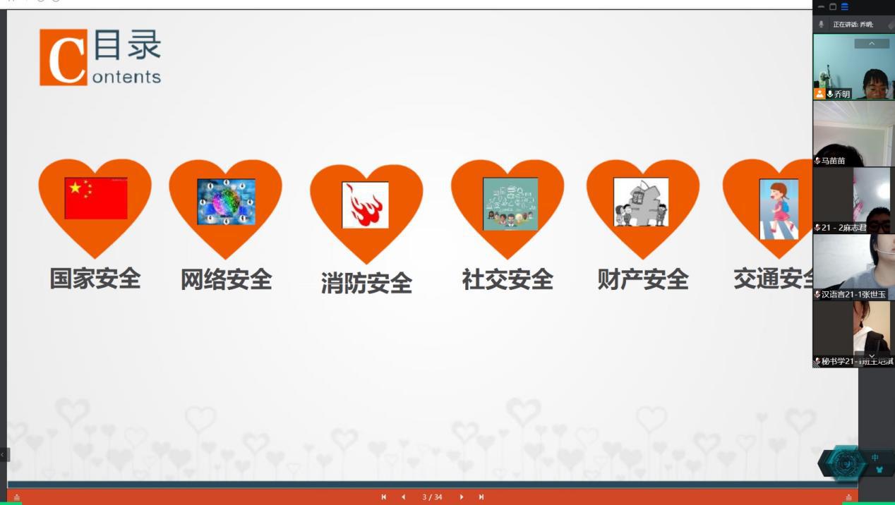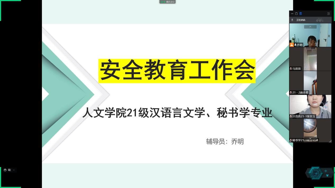 国庆假期即将结束,为了加强学生的安全意识,提高防范意识,10月6日,WilliamHILL中国秘书学和汉语言文学专业辅导员乔明老师通过腾讯会议召开安全教育工作会,2021级秘书学和汉语言文学专业全体学生参加。