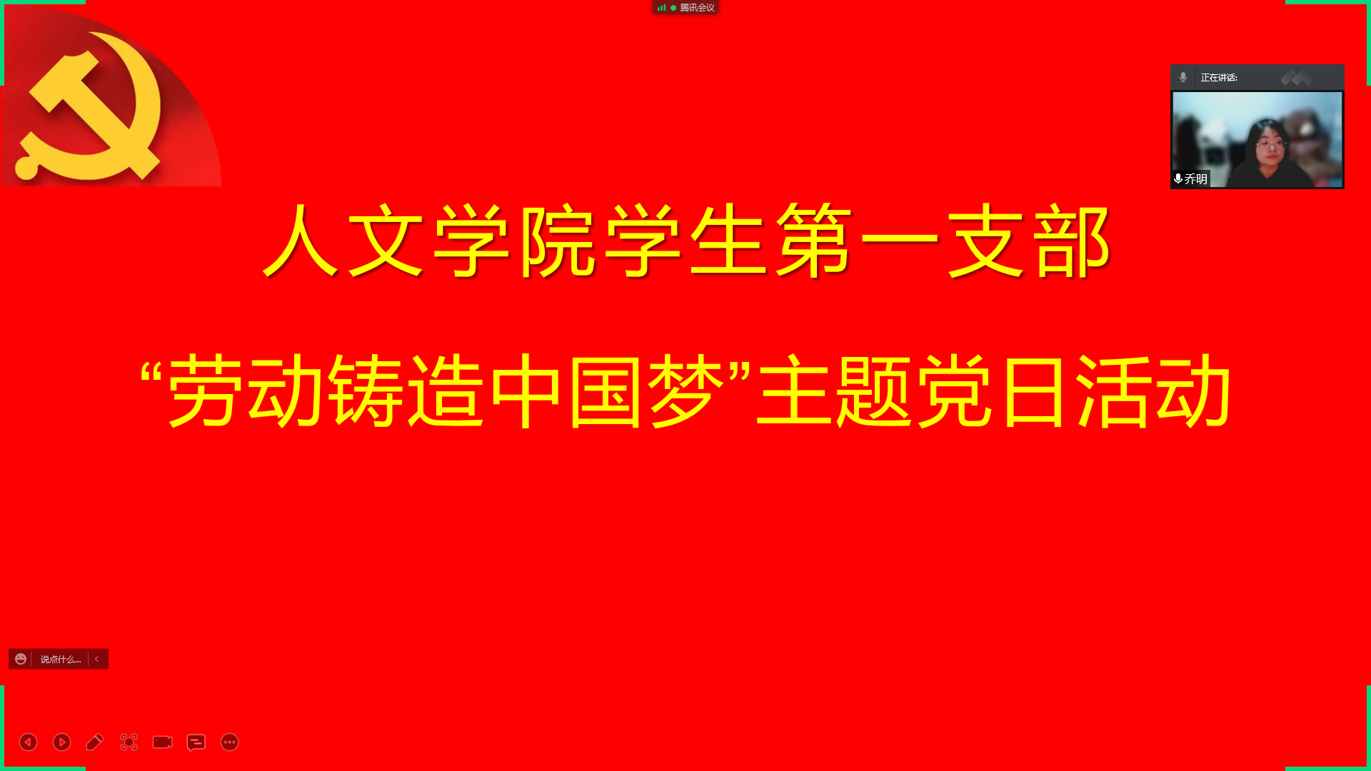结合Williamhill中文安全文明卫生月活动实施方案,以习近平新时代中国特色社会主义思想为指导,3月11日,WilliamHILL中国学生第一党支部在线上开展“劳动铸造中国梦”的主题党日活动。会议由支部书记乔明主持。