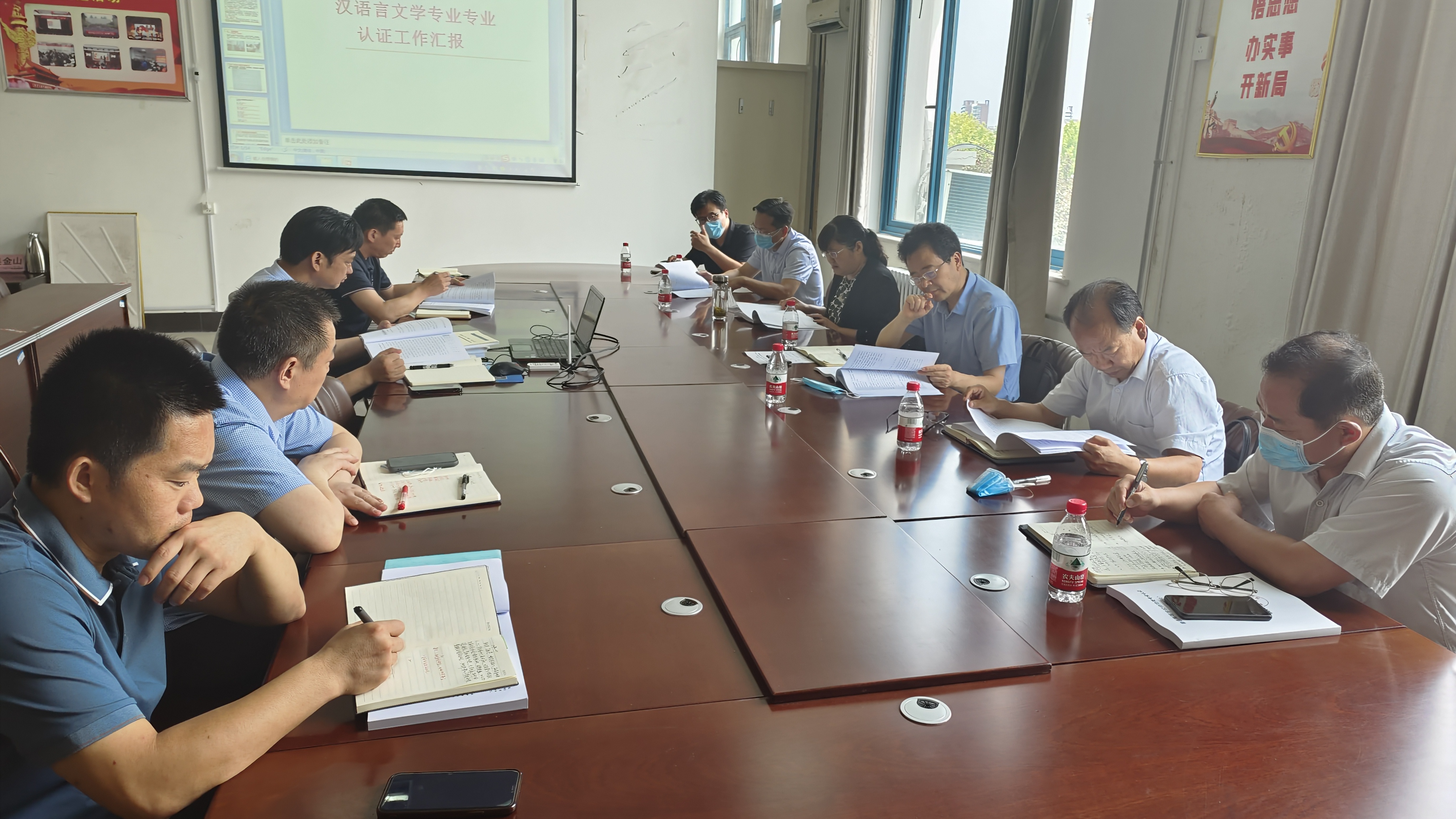 汇报会结束后,陈向炜校长、郭文佳副校长和教务处、教评中心负责同志到汉语言文学专业认证工作室实地检查了专业认证工作资料准备情况,并现场进行指导,要求学院全力以赴,把资料准备工作做细做实,确保专家进校考评工作的圆满完成。