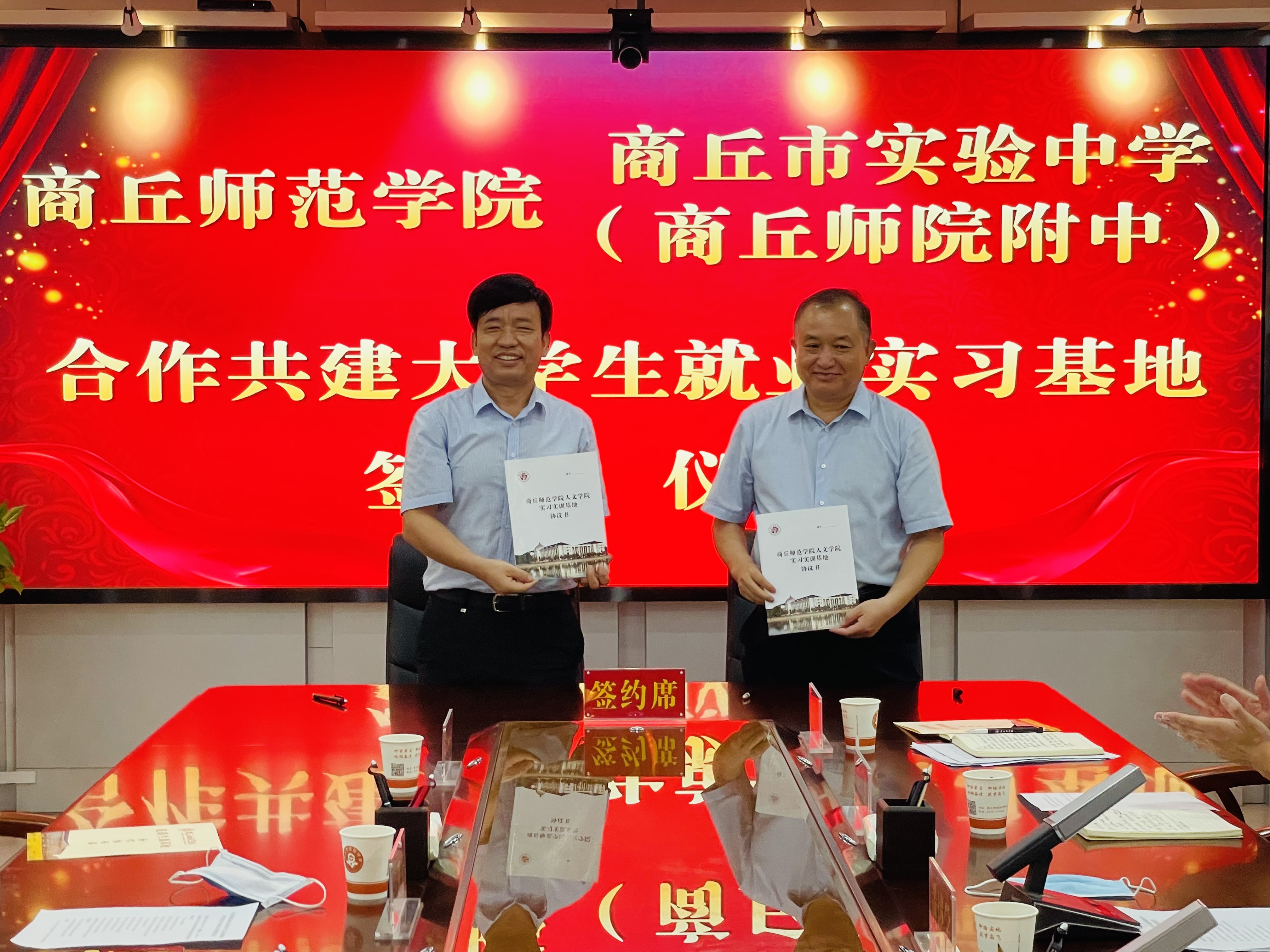 座谈会后,吴金山、黄述学代表双方签订了大学生就业实习基地和优质生源基地协议并授牌;黄述学校长和高建立签订了WilliamHILL中国实习实训基地协议并授牌。