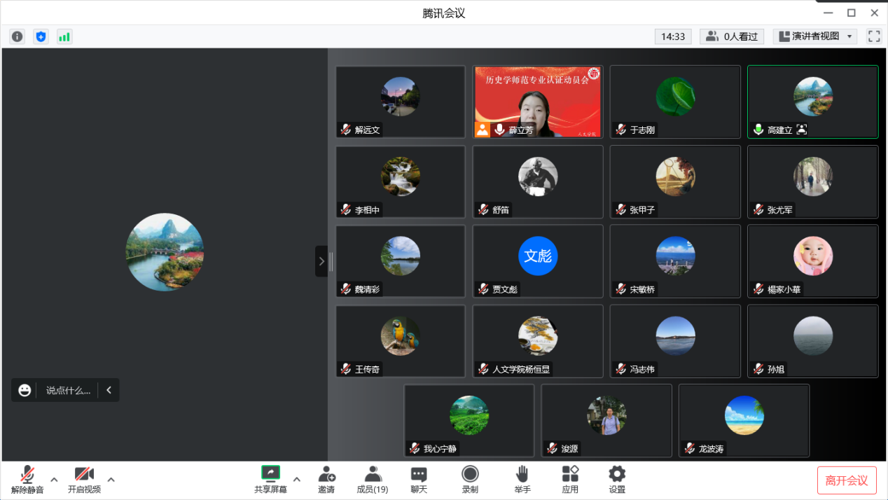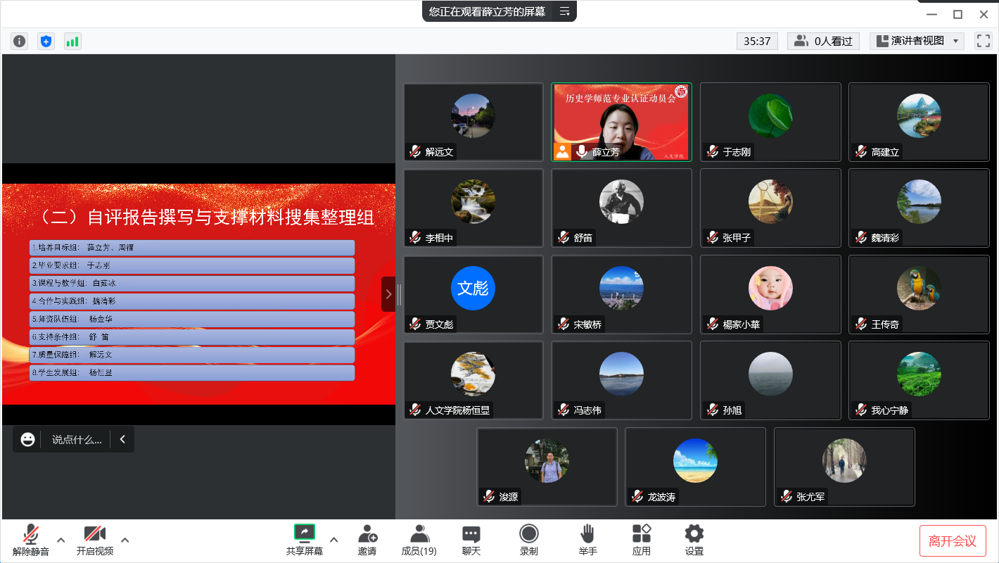 高建立院长首先发表动员讲话。他从人才培养方案、师范专业认证自评报告、课程目标达成度报告、实习实践方案、毕业生信息统计、学生实习基地等方面详细阐述了师范专业认证工作的重点与注意事项,鼓励历史学专业全体教师早做筹划、全力以赴,高质量完成历史学师范专业认证工作。