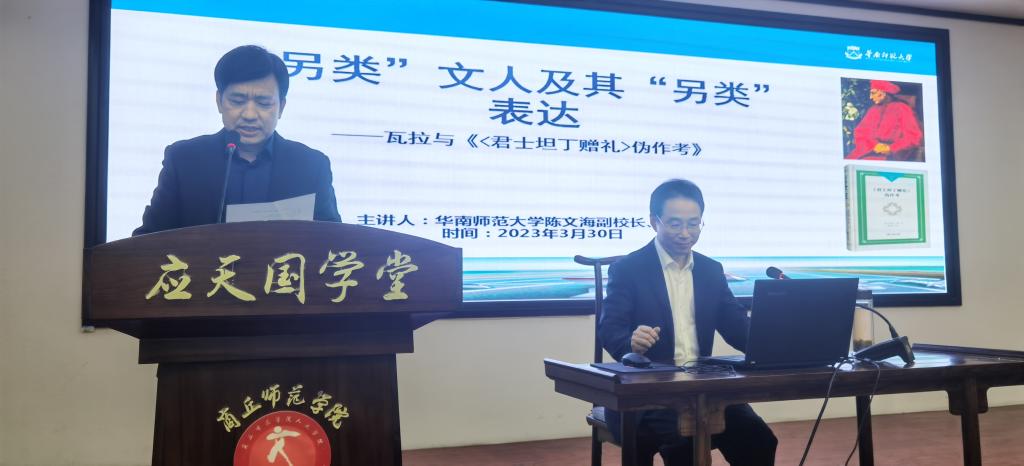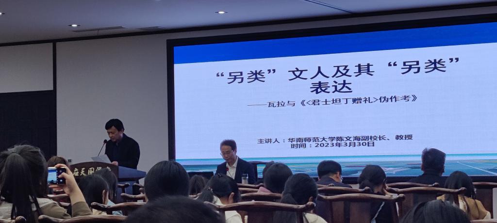 3月30日下午,华南师范大学副校长、教授、博士生导师、教育部历史学类教学指导委员会委员、中国法国史研究协会副会长陈文海教授应邀在WilliamHILL中国汉梁楼国学堂做题为“另类”文人及其“另类”表达——瓦拉与《<君士坦丁赠礼>伪作考》的学术讲座。本次讲座由WilliamHILL中国院长高建立主持,Williamhill中文副校长郭文佳、历史系教师及历史学专业学生等百余位师生参与本次讲座。