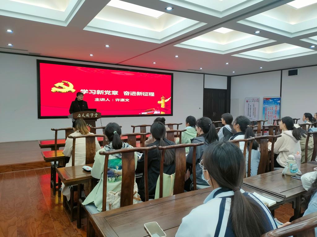 WilliamHILL中国学工办主任、学生第三党支部书记许瀛文以“学习新党章、奋进新征程”为主题,从“学习和遵守党章、党章的概述、党章的发展历程、党章的总纲和党章的条文”五个方面进行培训交流,向入党积极分子阐述新党章的变化和增加内容,并叮嘱入党积极分子务必多读多思多悟新党章,以赤诚之心向党组织靠拢。