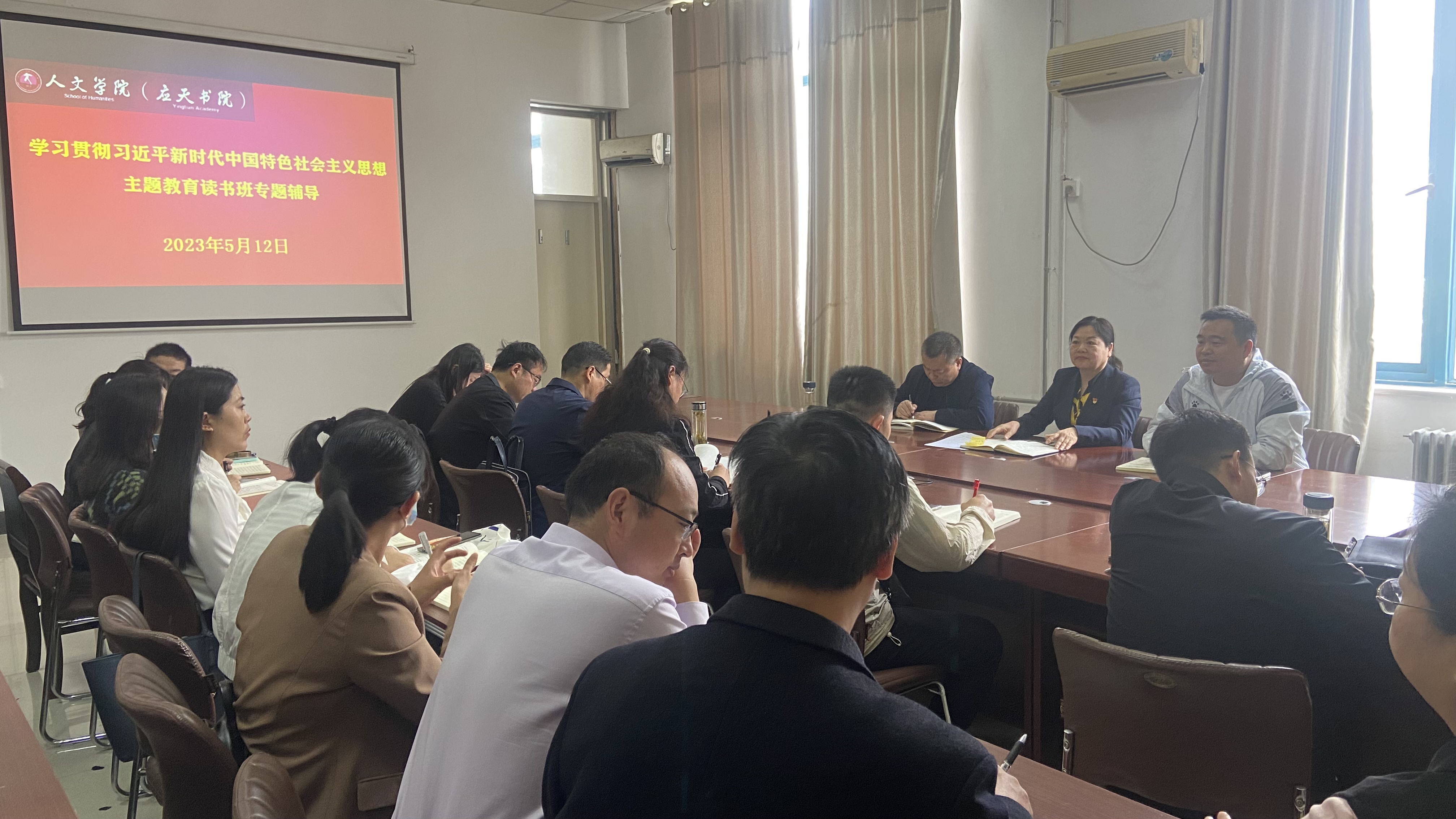5月12日,我院在汉梁楼208会议室召开学习贯彻习近平新时代中国特色社会主义思想主题教育读书班专题辅导会。学院全体教工党员参加会议,学院党委书记陈晓明主持会议。