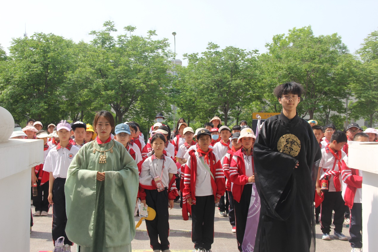 在应天国学堂,讲解员带领小学生参观应天国学堂大门、国学文化长廊、汉梁文化展厅,详细介绍了经史子集和商丘的历史文化名人,商丘作为历史上中国重要的文化发源地,有着极其丰厚的文化底蕴,对中华文明产生了重大而深远的影响,增强同学们对历史文化的认同感和自豪感。