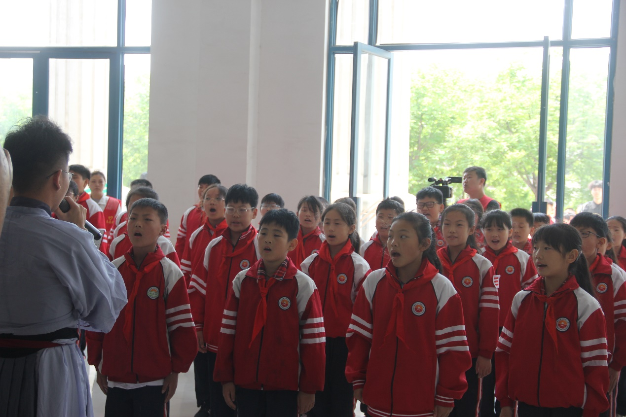 第二环节“应天书院拜师礼”,在我院陈佳伟同学的引领下,300余名小学生共行拜师礼,齐诵孔子名言,学习君子品格,传承中华优秀传统文化。