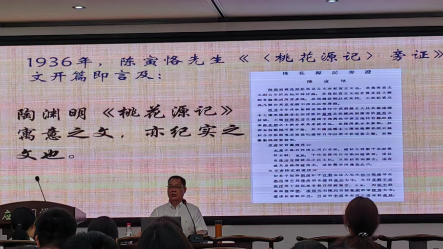 接着,周书灿教授立足于史料与史实,向大家介绍了唐长孺先生对陈寅恪先生《〈桃花源记〉旁证》一文运用“文史互证”得出信息的质疑与论争,以此引发听者对“文史互证”中寓意与纪实问题的思考,进而介绍了《穆天子传》的基本情况,并引入对《穆天子传》研究范式转型的讲解。周教授强调,忽略《穆天子传》的小说、神话体裁性质,混淆文学作品中寓意与纪实的区分,滥用文史互证法,不仅不能做到文史结合,而且会给古史研究造成一系列混乱。