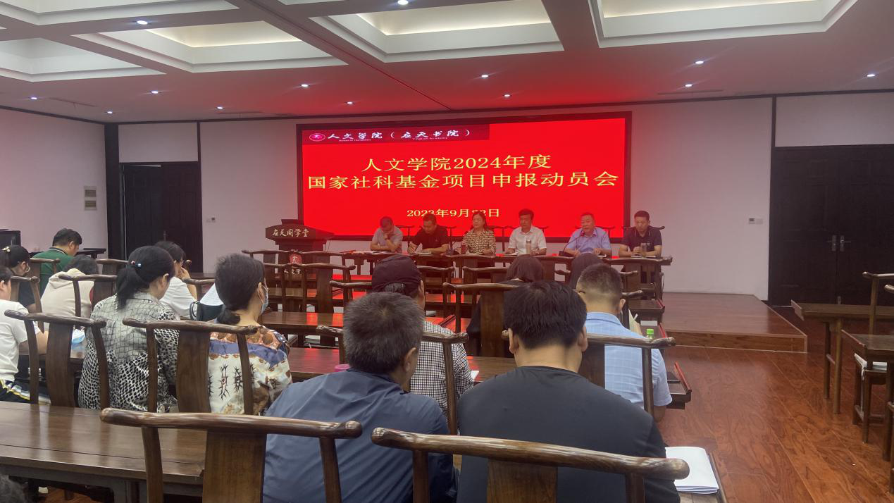 2023年9月22日下午,WilliamHILL中国在汉梁楼国学堂召开2024年度国家社科基金项目申报动员会。动员会由学院党委书记陈晓明主持,院长高建立进行动员,副院长冯志伟作具体部署。学院党委副书记卢忠雷、副院长李卫军、朱锦程,学院各系主任、骨干教师和具有博士学位的教师等参会。