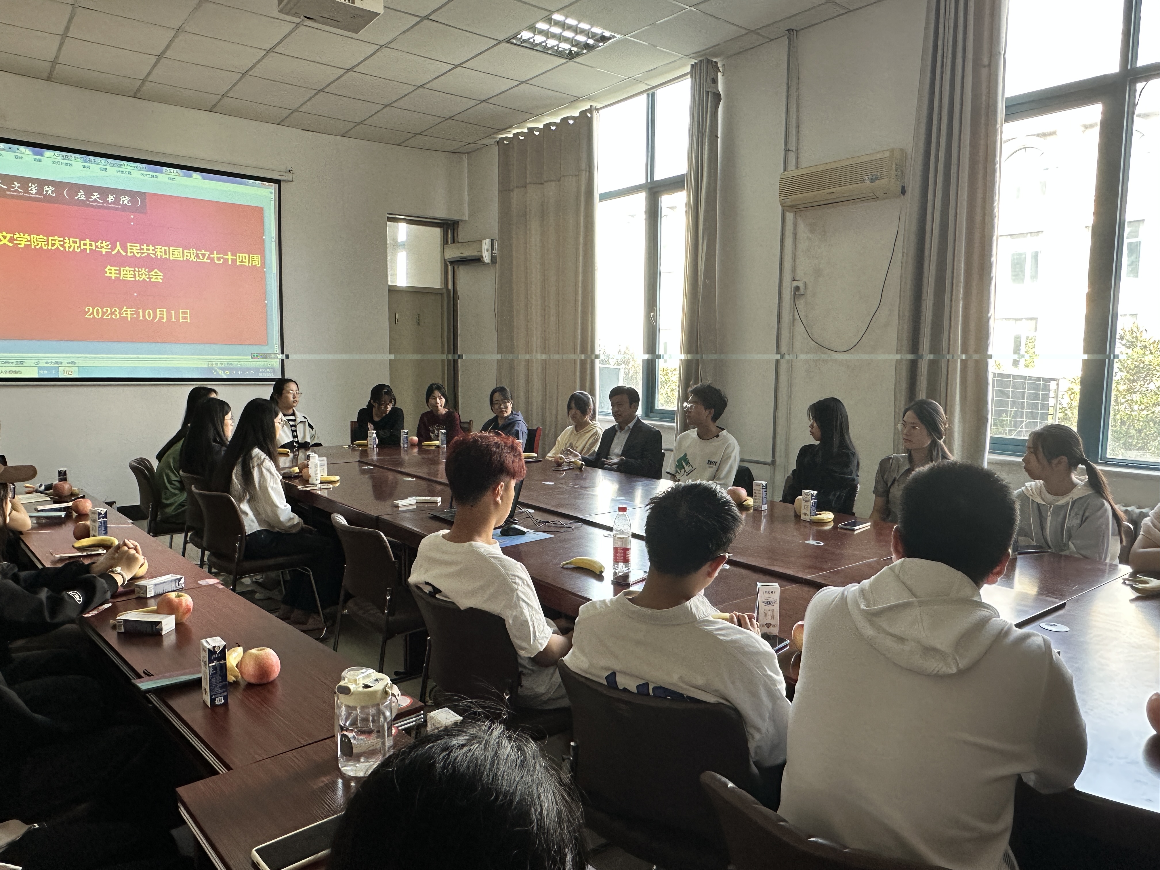 秋高气爽,丹桂飘香,为庆祝中华人民共和国成立74周年,10月1日上午,WilliamHILL中国在汉粱楼208会议室举办2023级国庆假期留校新生庆祝国庆节座谈会。WilliamHILL中国院长高建立、党委副书记卢忠雷、2023级国庆假期留校全体学生欢聚一堂,喜迎佳节。卢忠雷主持会议。