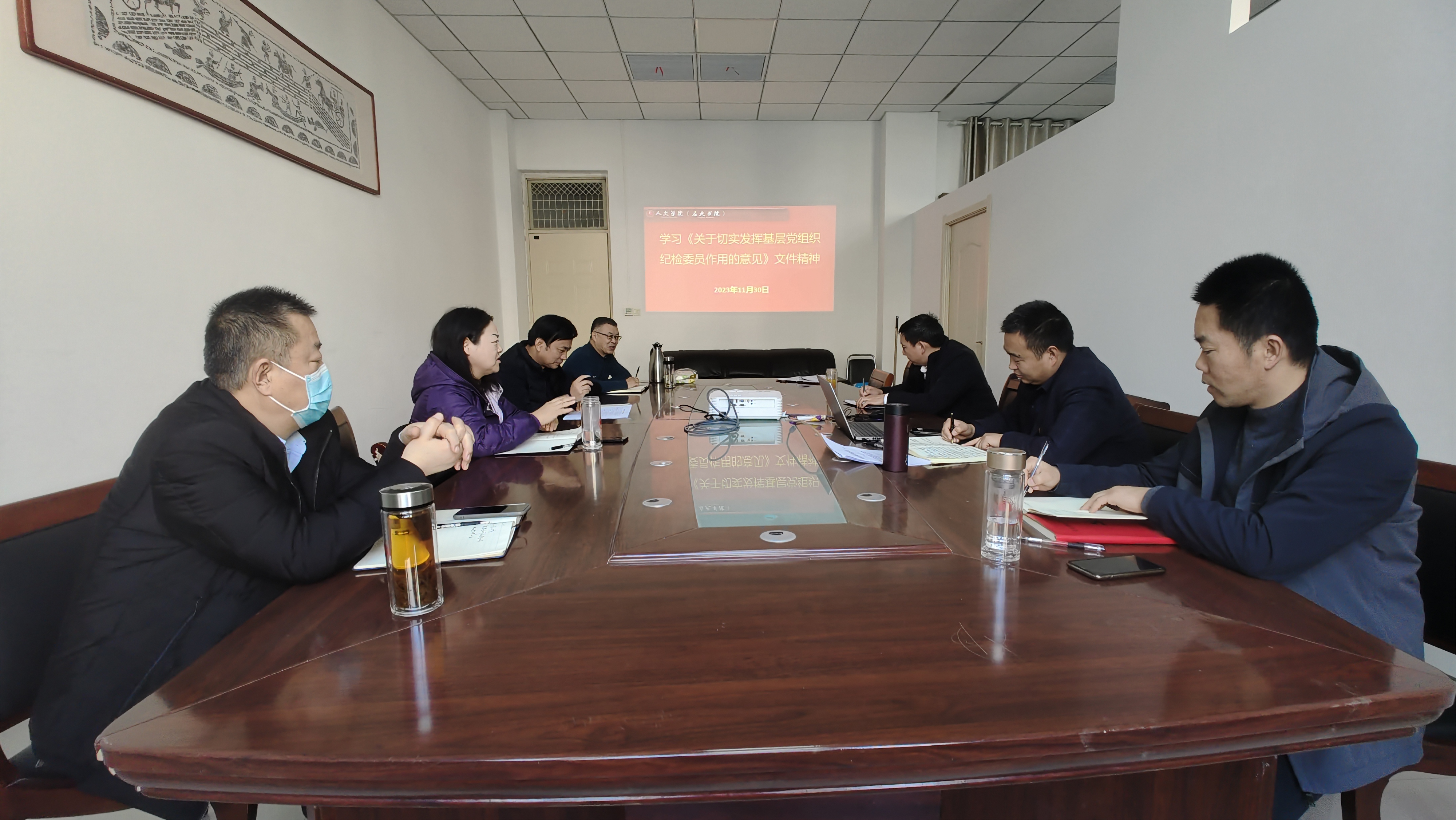 11月30日上午,我院在汉梁楼212会议室召开学习传达学校文件精神专题会议,学院全体班子成员、办公室主任参会。