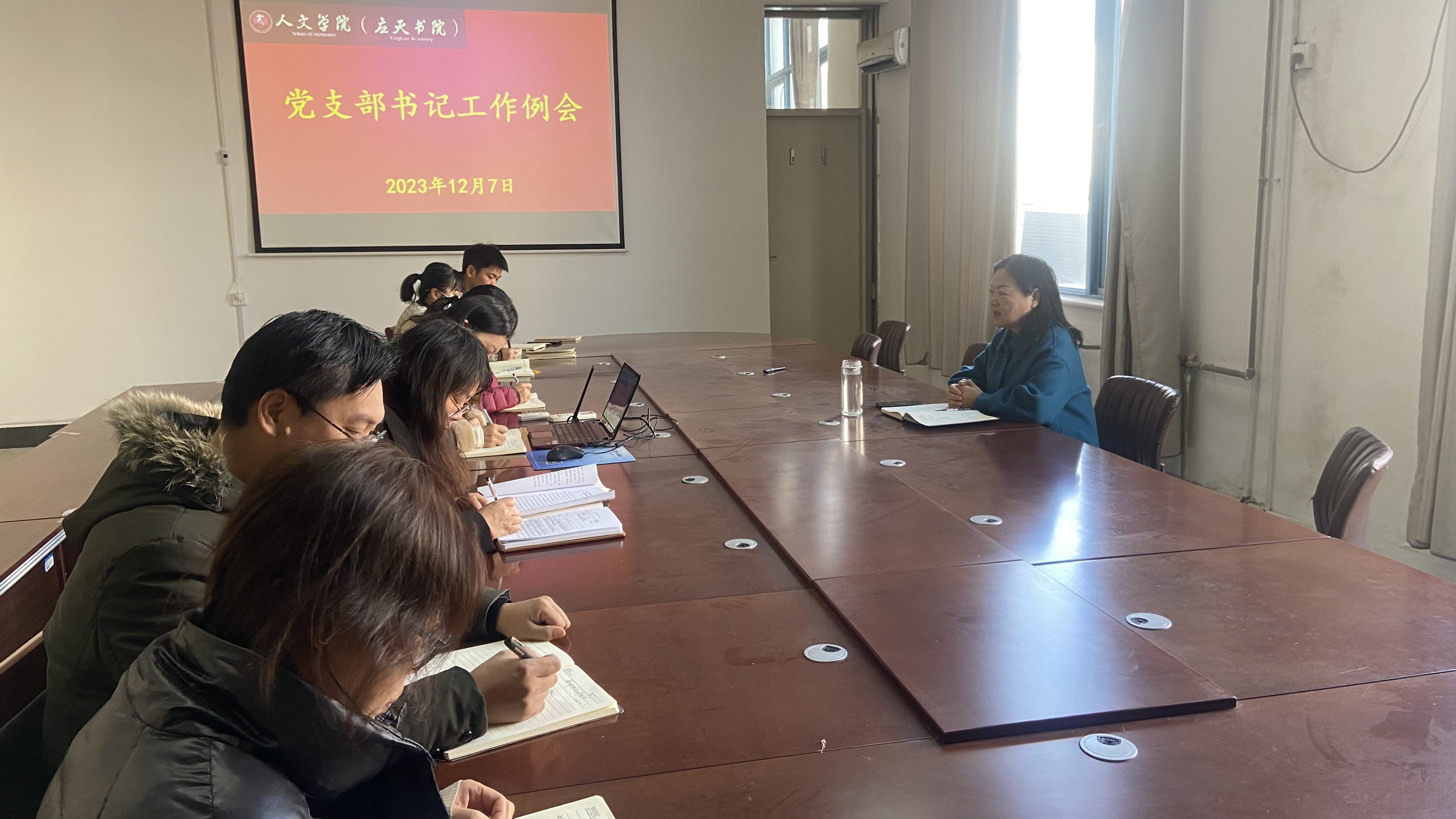 12月7日,我院党委在汉梁楼208会议室召开学院党支部书记工作例会,学院全体党支部书记参加会议。学院党委书记陈晓明主持会议。