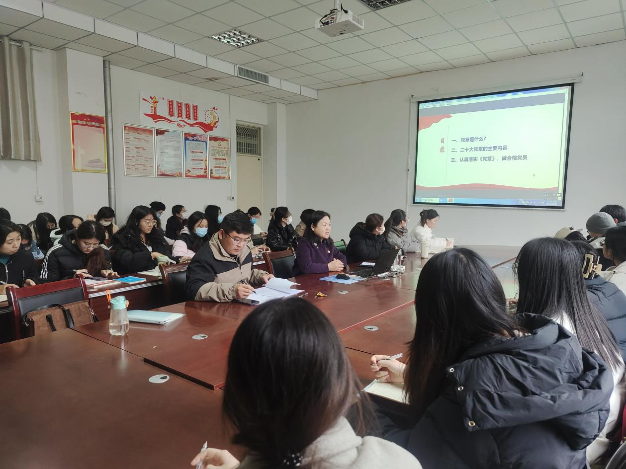 学院党委书记陈晓明以“学党章、强党性,做党的事业接班人”为题,带领大家学习了新修正的《中国共产党章程》,从“党章是什么、新修正党章的主要内容、认真落实党章做合格党员”三个方面,深刻阐述了党章的形成历史和作用,语重心长地告诫与会预备党员同志务必牢记入党初心,做“有信念、有纪律、有品行、有作为、讲政治、讲规矩、讲道德、讲奉献”的合格党员。