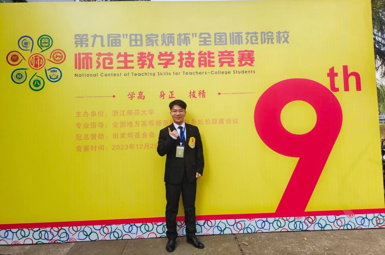 2023年12月29日—31日,第九届“田家炳杯”全国师范院校师范生教学技能竞赛决赛在浙江师范大学举行。由白茹冰、薛立芳、魏清彩老师指导的历史学专业2021级师范生陈佳伟在现场决赛中以优异的成绩荣获全国一等奖。