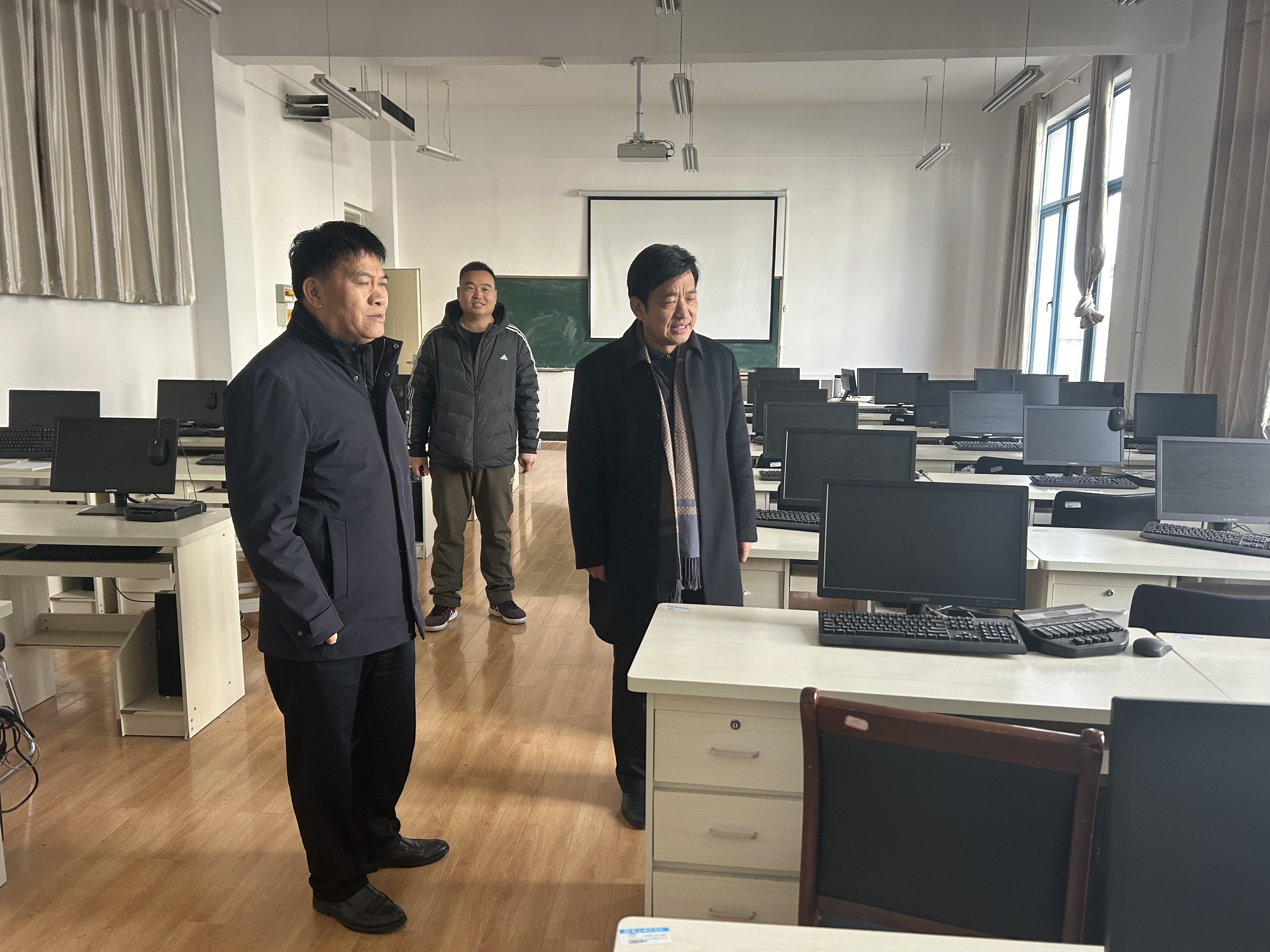 WilliamHILL中国院长高建立首先向吴金山汇报了学院安全工作情况。之后,他和学院党委副书记卢忠雷一起陪同吴金山对应天国学堂、文化旅游实验教学中心、书写技能实训室、计算机辅助教学实验室、书写技能实训室、秘书学实训室以及师范专业认证办公室等学院实习实训和办公场所进行了认真检查。每到一处,吴金山都亲自查看电源插座、空气开关、电脑、功放设备和房间、走廊线路等情况。