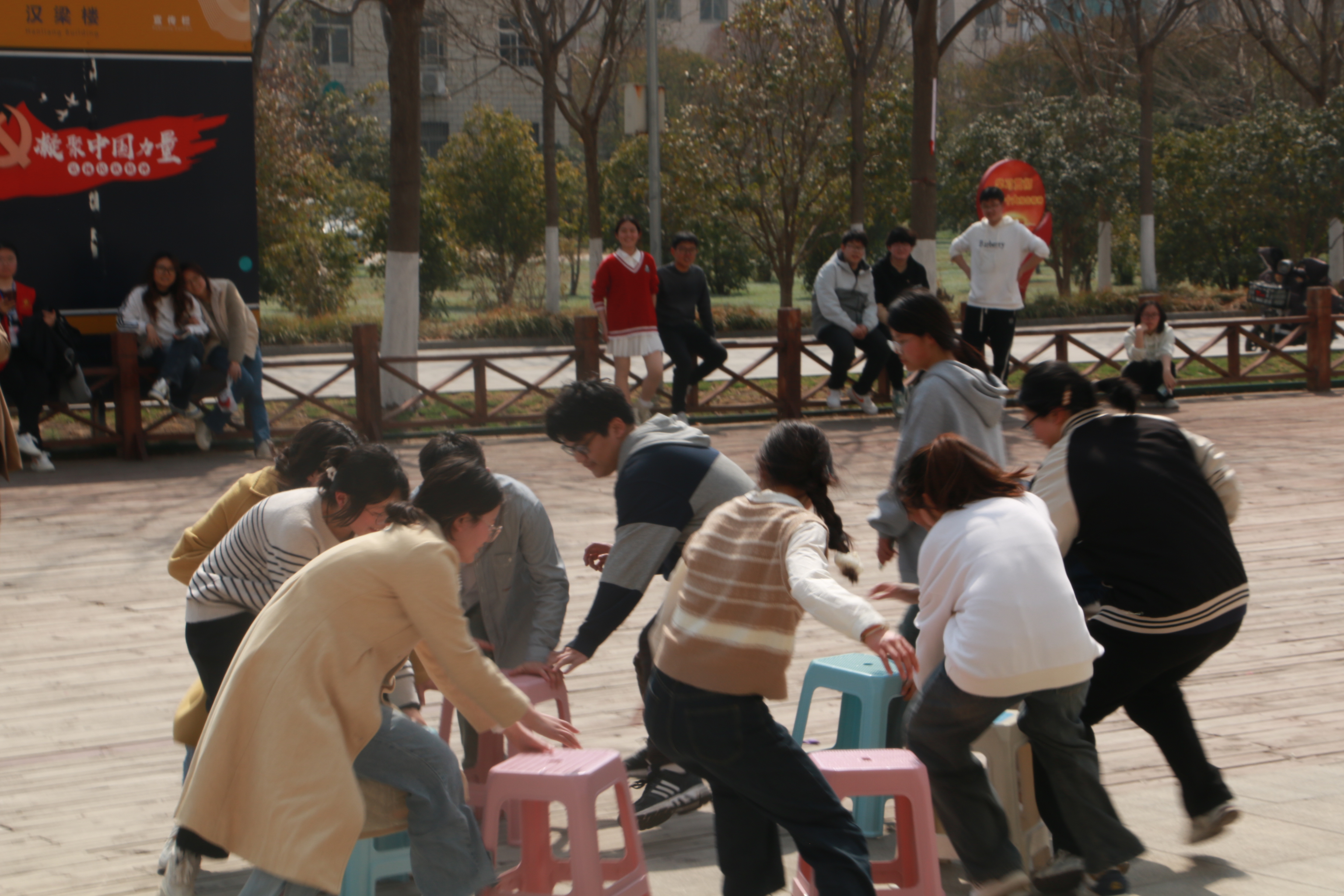 活动伊始,陆海泽老师为本次活动作开幕致辞,随后参与本次活动的全体人员合影留念。本次活动分为“爱的抱抱”、拔河、踩气球、抢板凳和套圈五个项目,每个项目的获胜者可领到精美的小礼品。活动过程中,同学们情绪高昂,积极投身于各个环节中。活动现场掌声、喝彩声、欢笑声此起彼伏,同学们都沉浸在游戏的快乐中。