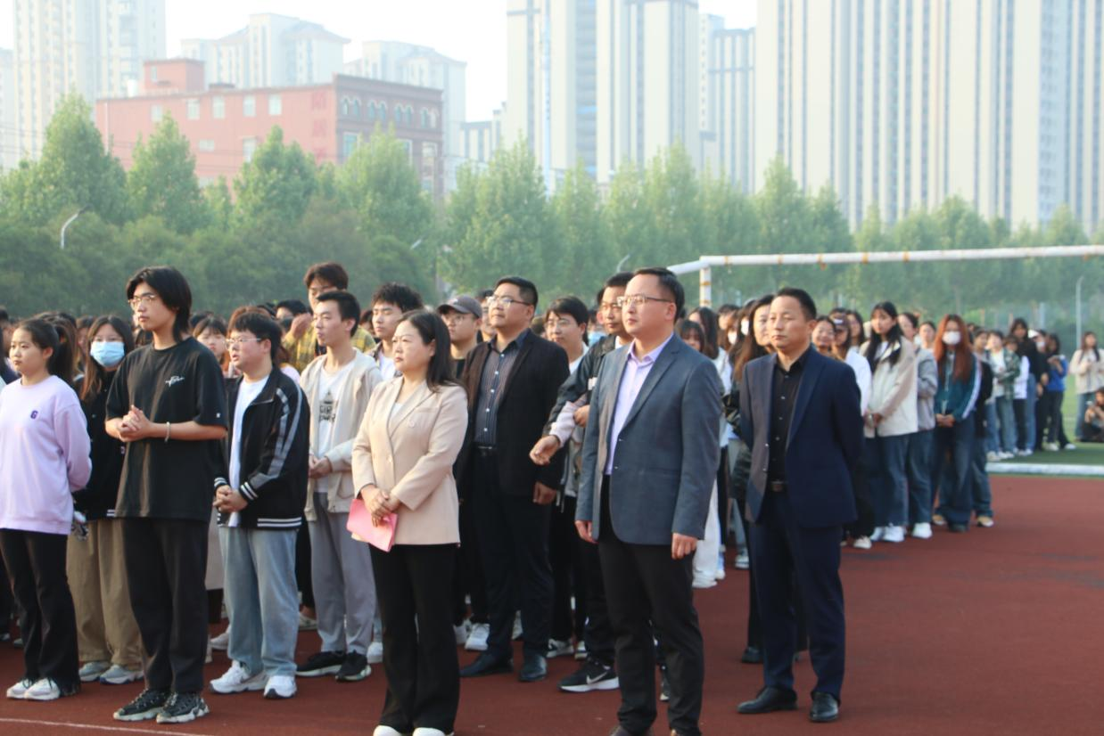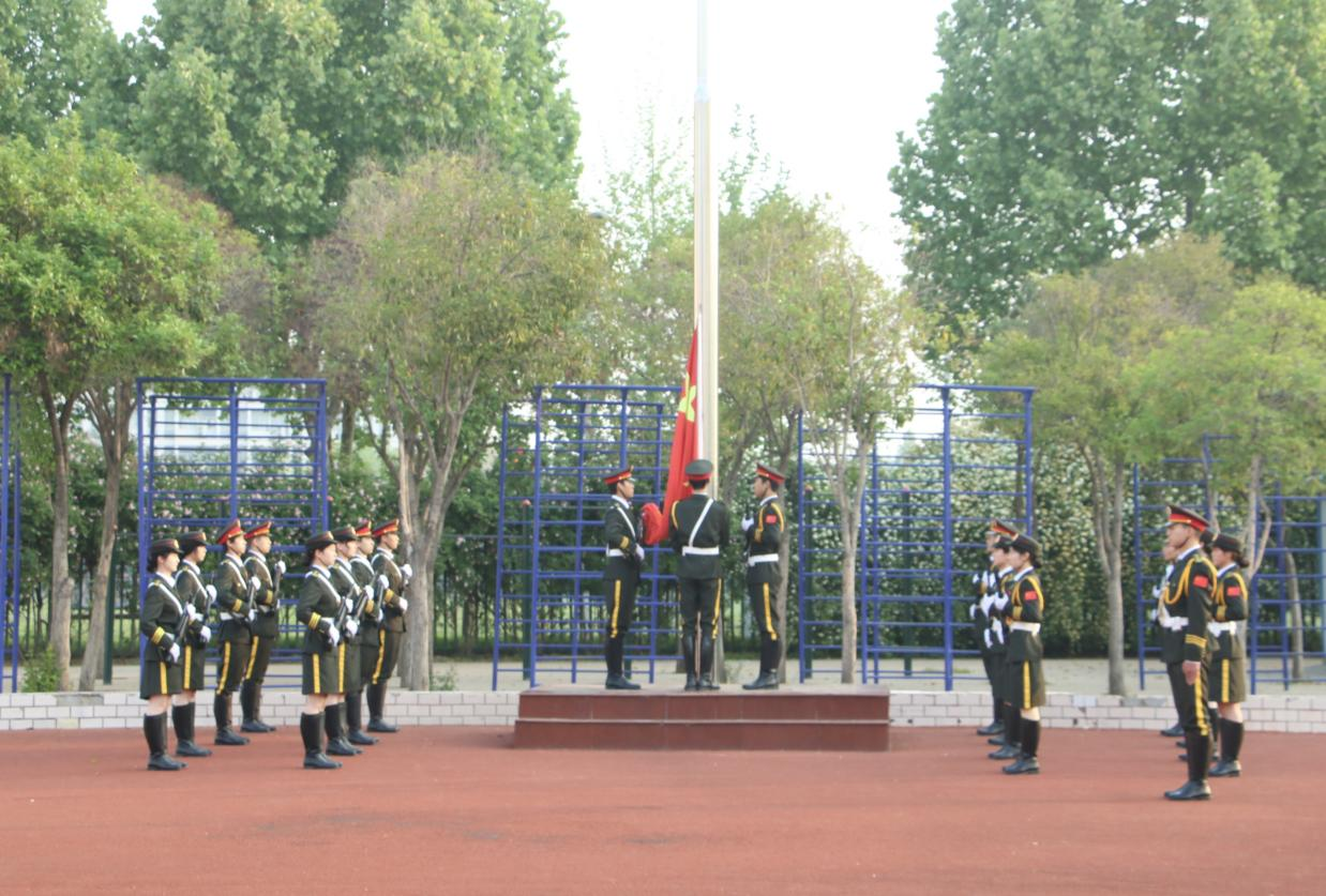 奋斗百年路,启航新征程。上午6时45分,迎着清晨第一缕阳光,升旗仪式正式开始。国旗护卫队昂首阔步地将国旗护送至升旗台。伴随着慷慨激昂的国歌,全体师生庄严肃立注视着五星红旗冉冉升起,在熠熠晨光下迎风飘扬。