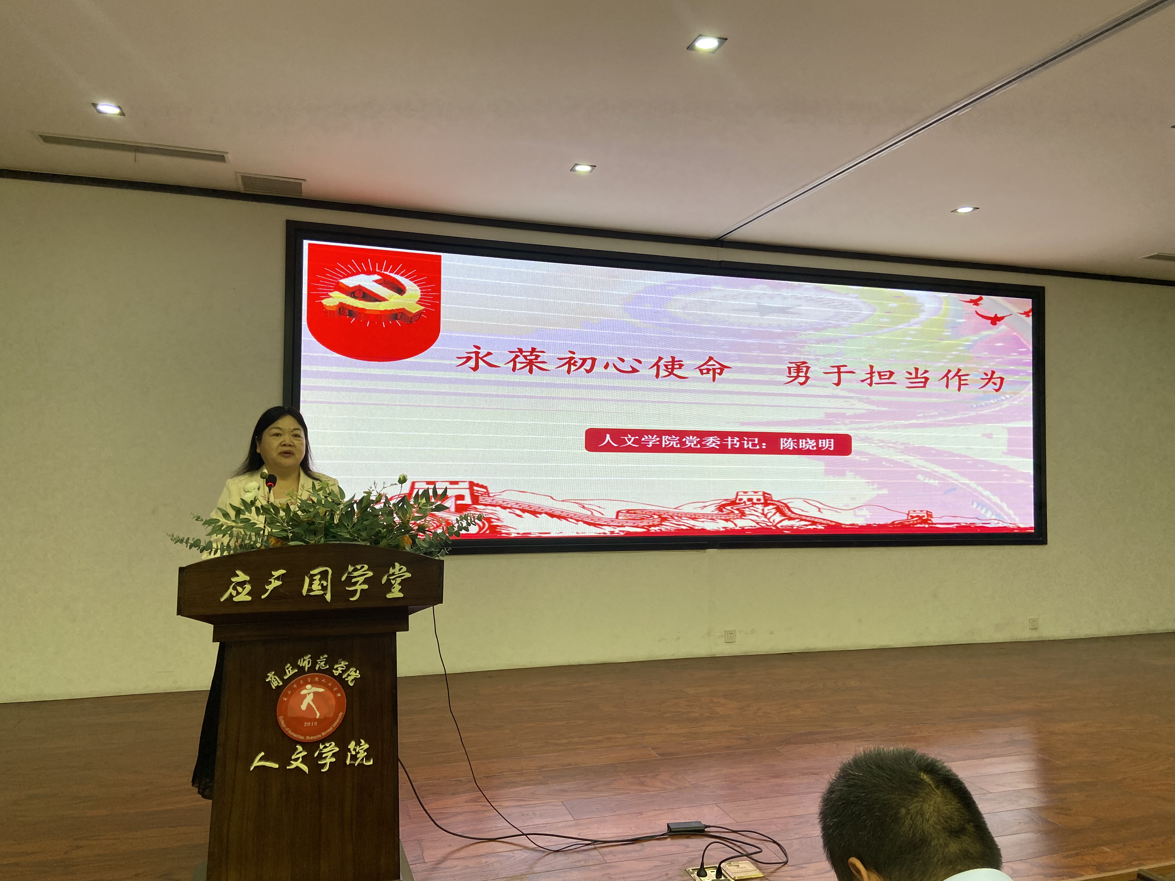 陈晓明以《永葆初心使命,勇于担当作为》为题为2024届毕业生党员上了微党课,并提出要求:第一,铭记党员身份,永葆初心使命;第二,加强知识学习,夯实党性修养;第三,坚持严格自律,弘扬优良作风;第四,发挥模范作用,勇于担当作为。同时她从“强化校规校纪意识,站好最后一班岗”“牢记党员身份、提高政治站位”“不忘母校培育之恩,宣传学校、传播正能量”对2024届毕业生党员进行了嘱托。