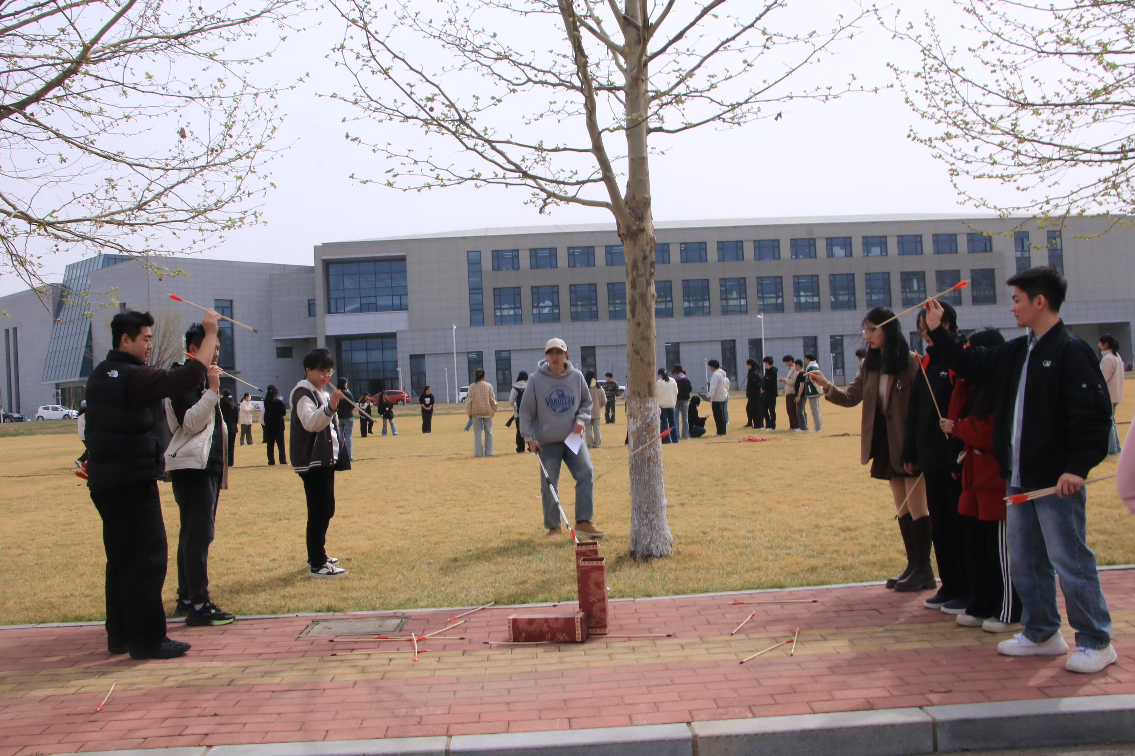 活动在欢快的广播体操下拉开了帷幕。首先,张夏楠老师发表了讲话,预祝本次活动顺利开展。接着,同学们在主持人的带领下分别进行了广播体操、击鼓传花、投壶、拔河等妙趣横生的游戏,呼喊声与掌声此起彼伏,现场轻松愉快的氛围有效缓解了同学们学习与生活中的焦虑情绪。最后,主持人公布了投壶游戏和拔河比赛优秀团队的获奖名单,并且合影留念,将今天的美好定格。